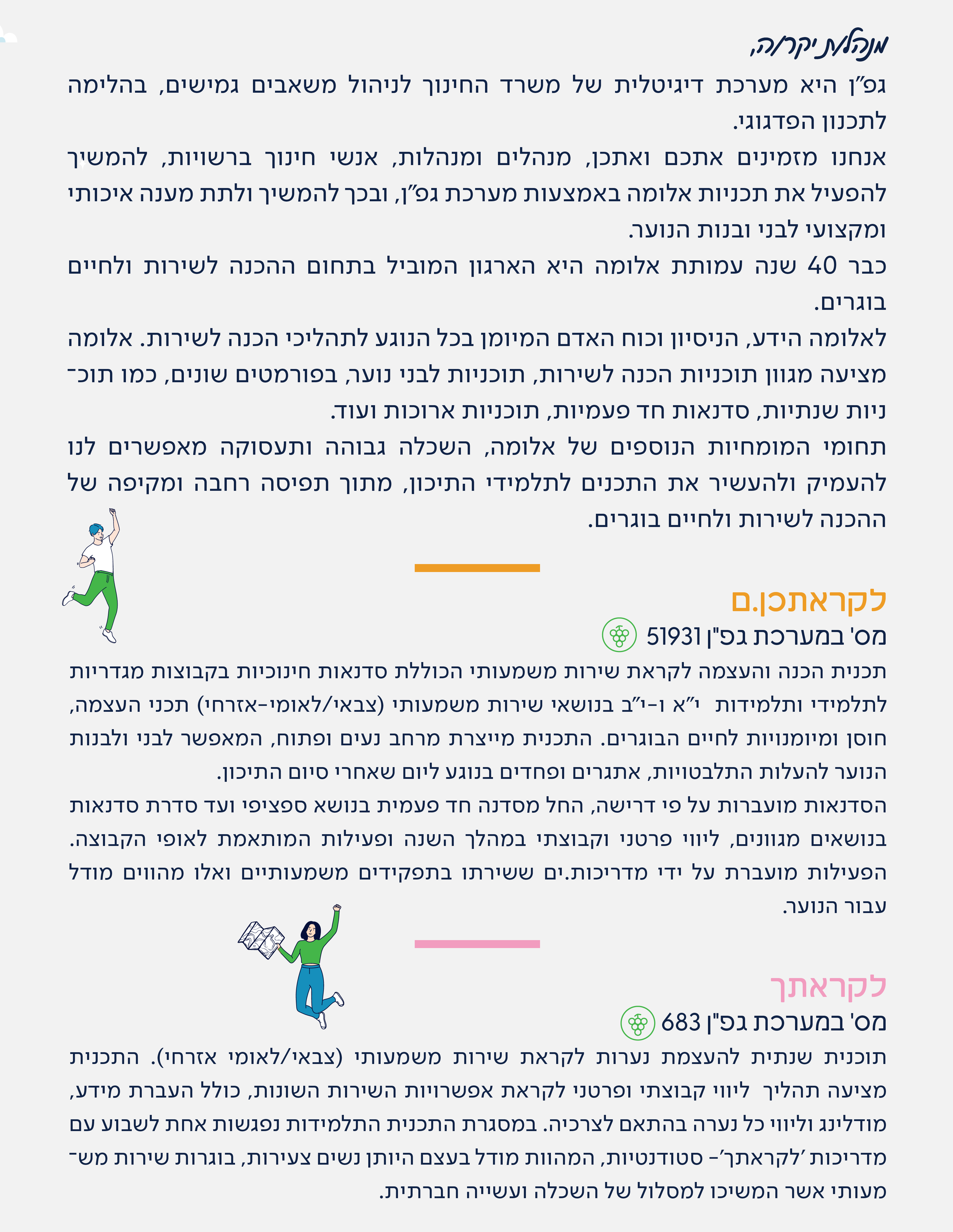 מוזמנים להשאיר פרטיכם וניצור אתכם קשר לגבי תכניות אלומה במערכת הגפ״ן
